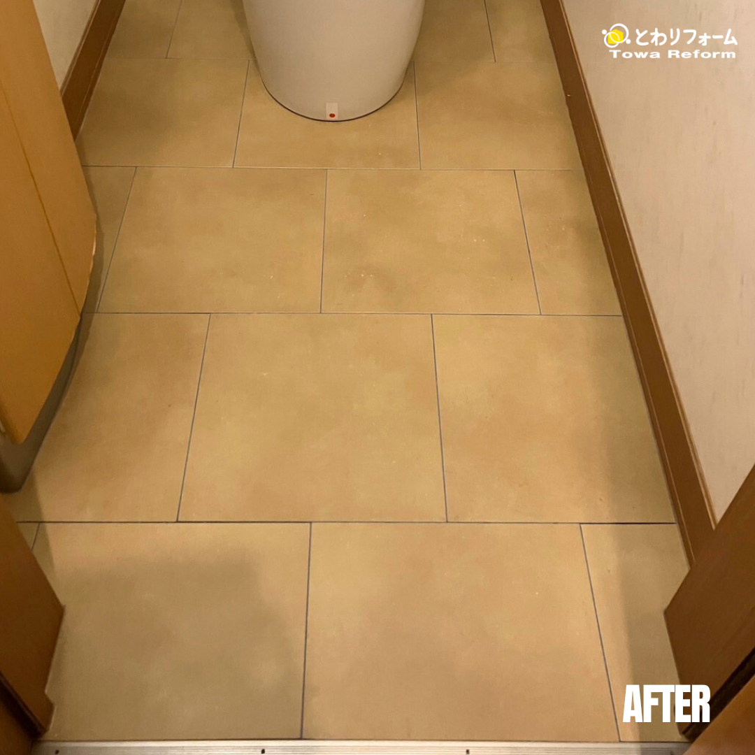 床にはフロアタイルをレンガ張りで施工し、トイレ空間に程よいアクセントを加え、「お掃除しやすいのに、オシャレ」を両立した空間に仕上げました。
